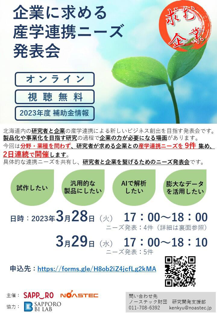 開催日程:2023年3月28日(火) 17:00~18:00 ニーズ発表4件