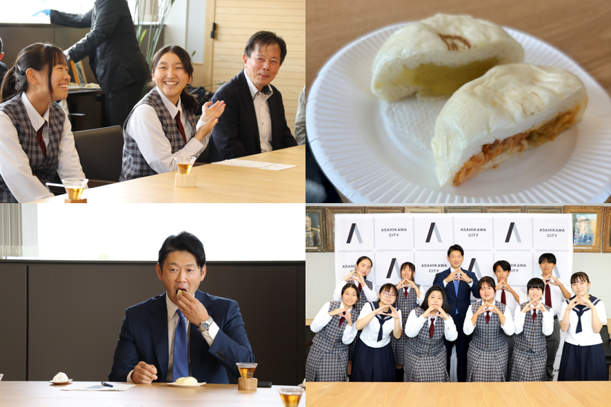9月10日(火)、生徒の皆様と一緒に旭川市 今津市長へ完成報告に伺い、終始、和やかな雰囲気で新商品の魅力をたっぷりとPRいたしました。