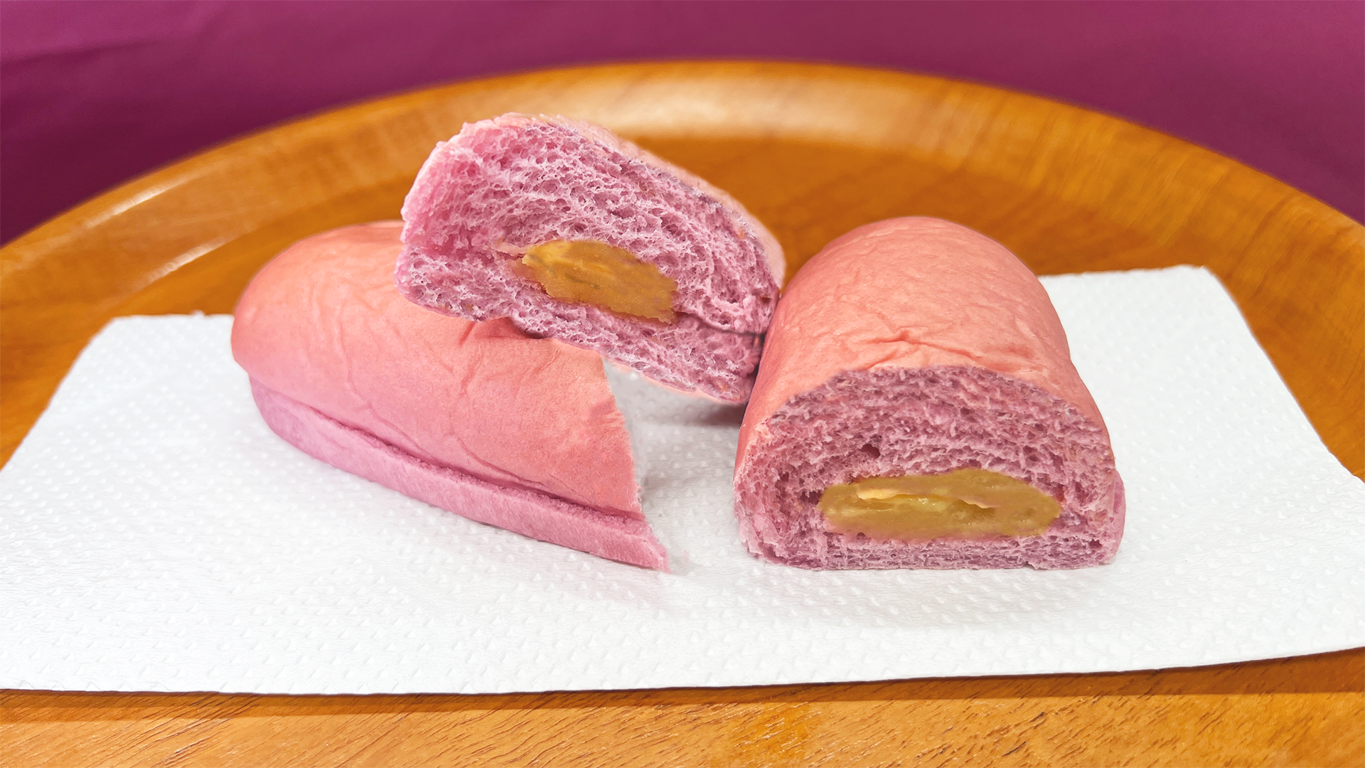 さつまいもをイメージした紫色の生地に北海道産さつまいもを使ったさつまいも餡と、バニラビーンズ入りカスタードクリームをサンドしています。