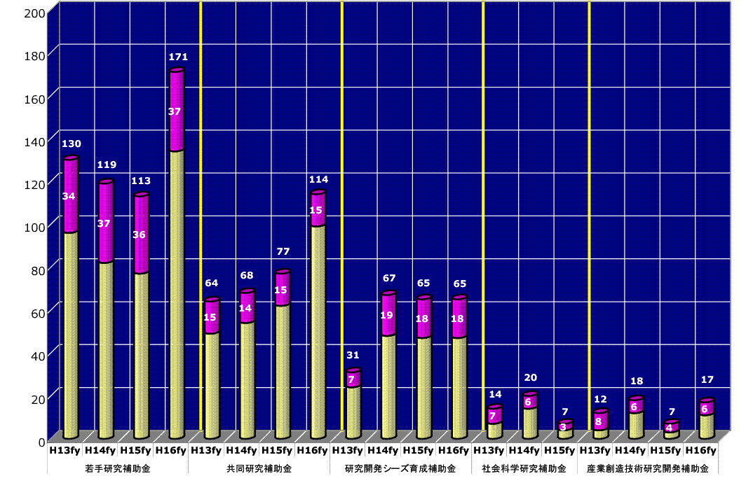 2.平成16年度「研究開発助成事業」における補助金別の応募・採択件数について